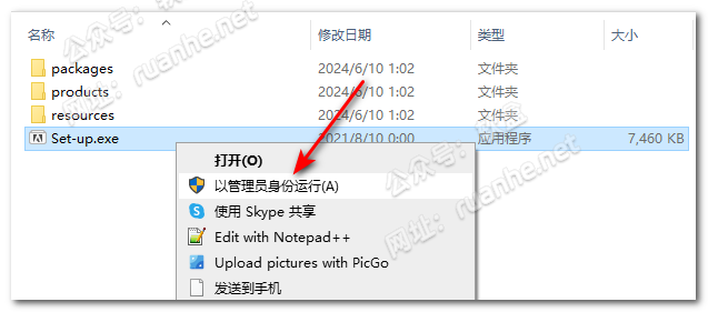 右键点击【Set-up】文件,选择【以管理员身份运行】。
