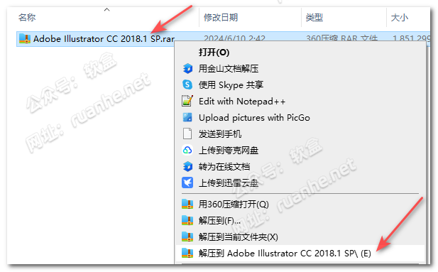 右键点击【Adobe Illustrator CC 2018.1 SP】压缩包,选择【解压到Adobe Illustrator CC 2018.1 SP】。