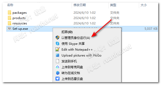 右键点击【Set-up】文件,选择【以管理员身份运行】。