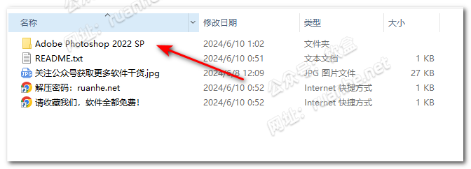 解压完成后,双击打开【Adobe Photoshop 2022 SP】文件夹,需进两次。