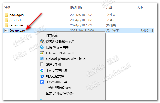 右键单击【Set-up】文件,选择【以管理员身份运行】。