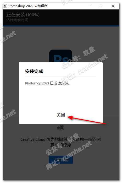 安装完成后,点击【关闭】按钮。